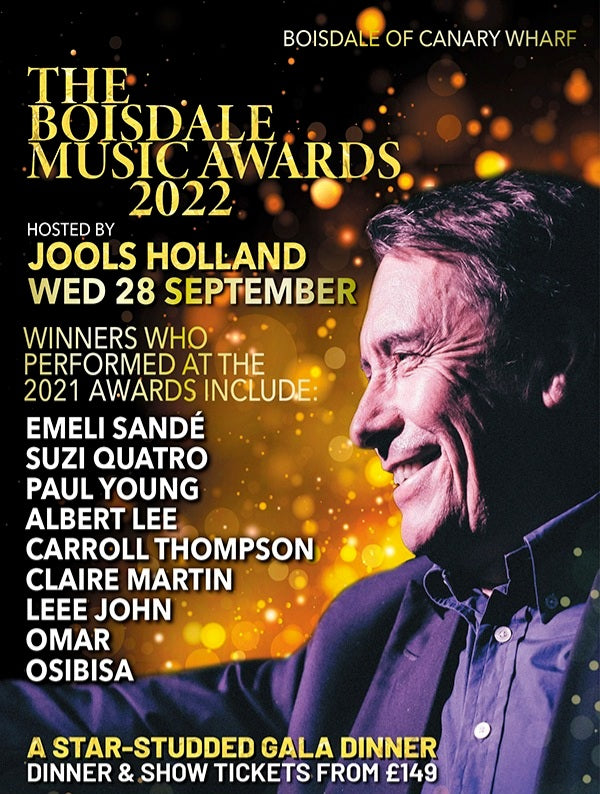 I'm so chuffed to be nominated again as 'Boogie Woogie Artist Of The Year' at The Boisdale Music Awards 2022 on 28 September hosted by Jools Holland.